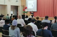 12 января 2022 года на базе нашей школы состоялась традиционная встреча представителей трудовых коллективов. От лица администрации города на встрече присутствовала Касимова Р.Р., заместитель начальника управления, начальник отдела организационно-педагогического обеспечения и социальной защиты управления образования, которая ознакомила с докладом "Итоги социально-экономического развития города за 2021 год", а также поблагодарила присутствующих в зале педагогов и воспитателей за весомый вклад каждого из них в дело подрастающего поколения.