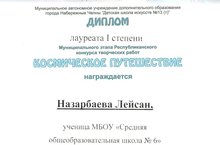 Подведены итоги Республиканского конкурса «Космическое путешествие». Поздравляем Назарбаеву Лейсан, ученицу 11А класса, которая в номинации «Литературное творчество. Проза» заняла 1 место, педагог Долгова Е.Б.