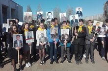 26.04.16г. учащиеся 8-х классов нашей школы прошли торжественным строем в составе Бессмертного полка. Ребята несли портреты прабабушек и прадедушек, участников Великой Отечественной войны. Для каждого из нас участие в акции "Бессмертный полк" - это память о героическом подвиге наших родных и близких, это гордость за свою семью и свою страну.
