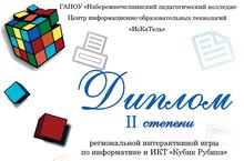 Поздравляем школьную команду учащихся 8-9 классов, занявшую призовое место в I Региональной интерактивной игре по информатике "Кубик-Рубик"