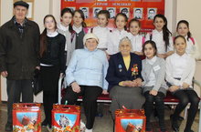 Тимуровский отряд "Улыбка", вместе с руководителем Моисеевой В.М. и зам. директора Кудрявцевой С.В. посетили ветерана Великой Отечественной войны Данилова Леонида Григорьевича и вручили ему медаль "70 лет Победы в Великой Отечественной войне 1941-1945 годов" и подарки от руководителя Исполнительного комитета г. Набережные Челны Магдеева Н.Г.