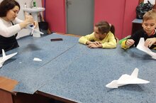 Мастер - класс по метательным плайнерам ЦДТТ 5. Модель изготавливается из пенопласта. В разработке предложены детали самолета, изготовленные на лазерном станке. Готовая модель имеет аэродинамические свойства, которые позволяют модели выполнять планирующий полет.