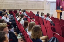 В актовом зале нашей школы прошла профилактическая беседа с инспектором по делам несовершеннолетних ОДН ОП 3 " Центральный" Печерицей Л.Ю.