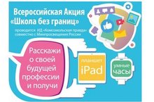 С начала сентября в онлайн-формате стартует Всероссийская акция-фотоконкурс «Школа без границ», задачами которой является мотивировать детей к развитию своих талантов, а также привлечь внимание общественности к лучшим образовательным практикам в сфере ранней профориентации обучающихся общеобразовательных организаций. Акция проводится с 1 по 30 сентября 2018 года. Участие могут принять обучающиеся 1-11 классов общеобразовательных организаций.