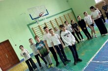 Турнир по волейболу в спортивном зале школы между учащимися 8А и 8Д. -