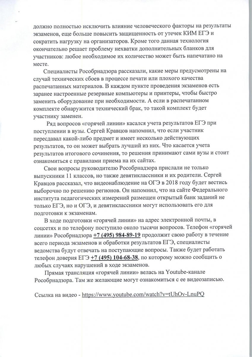Федеральная служба по надзору в сфере образования и науки Министерства образования инауки РФ провела "горячую линию" по вопросам подготовки к государственной итоговой аттестации 2018 года. На вопросы выпускников и их родителей о том, как будет проводиться ОГЭ и ЕГЭ в 2018 году, отвечал руководитель Рособрнадзора Сергей Кравцов и специалисты ведомства.