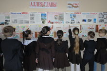 Ученики и родители 3 класса б выполнили проектную работу «Города-герои» и «Города воинской Славы», посвящённую празднику 9 МАЯ, а ученики 2 класса б выполнили рисунки на эту же тему. На 1 этаже была оформлена Аллея славы.