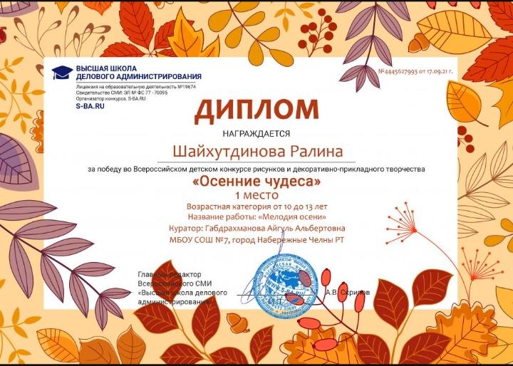Всероссийский детский конкурс рисунков и декоративно-прикладного творчества Осенние чудеса