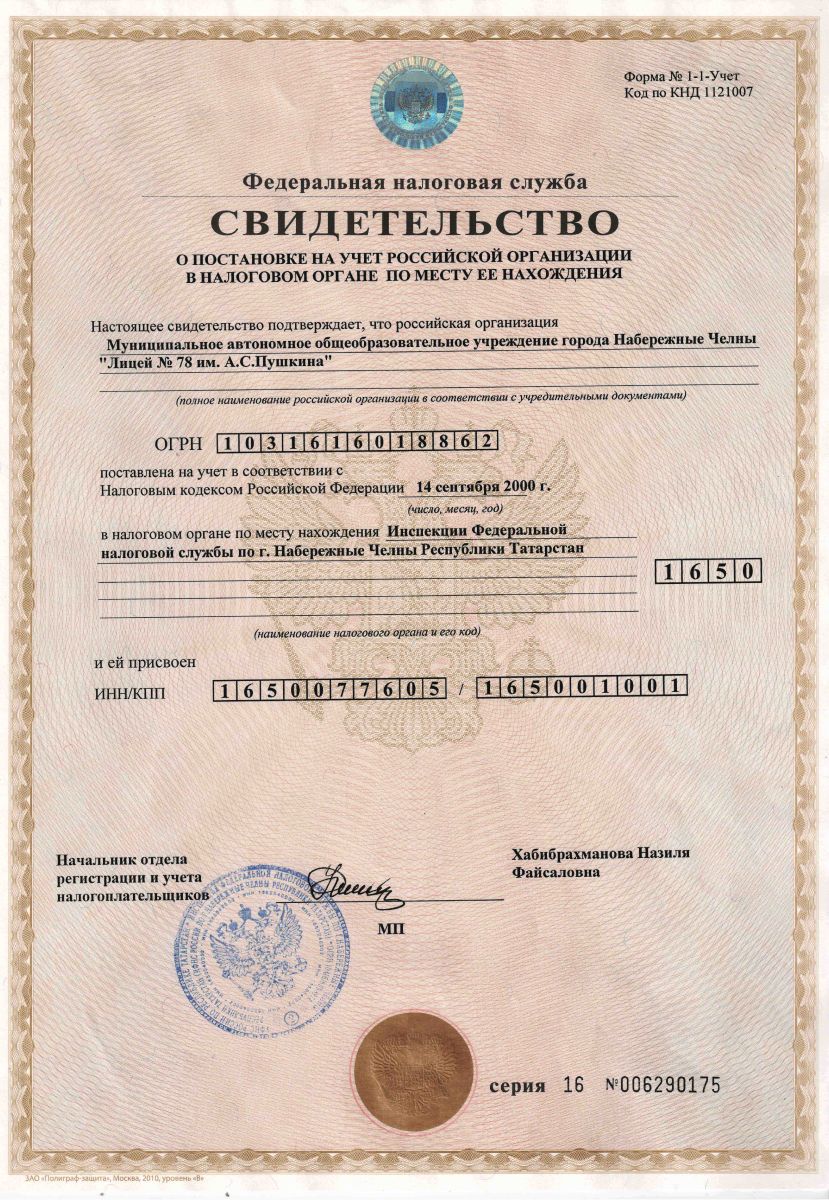 - Свидетельство о постановке на учет в налоговый орган // Скачать