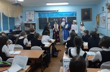 С наступающим Новым годом поздравили лицеистов и педагогов Дед Мороз и его команда: Снегурочка, Заяц, Тигр и Волк. По секрету, скажим, что подготовил представление Школьный Совет лицеистов!