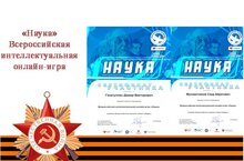 "Волонтёры Победы",учащиеся 10 "в" класса, приняли участие во Всероссийской интеллектуальной игре "Наука", в рамках Всероссийского проекта "Наши Победы". В онлайн - игре учавствовало более 25000 тысяч человек
