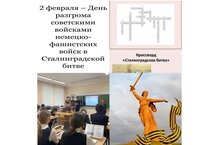 В рамках «Дней воинской славы», ученики 10 "В" класса "Волонтёры Победы", провели мероприятие"Сталинградская битва" для учащихся 8 "А" класса.