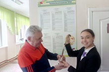 Юлдашеву Эльзу,ученицу 8 "Д" класса с выполнением Мастера Спорта России по синхронному плаванию. Эльза подарила свою серебрянную медаль Чемпионата Татарстана,которая будет украшать спортивный стенд лицея.