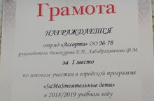 По итогам 2018-2019 учебного года лицейский отряд «Ассорти» Республиканского антинаркотического проекта «Самостоятельные дети» занял 1 место в городе! Поздравляем и благодарим ребят 7 д и 10 б классов! Руководители отряда – Хабибрахманова Фарида Масгутовна и Винокурова Екатерина Павловна