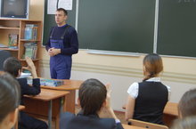 Состоялась встреча с сотрудником МЧС Воробьёвым С.Н., где он ознакомил учащихся 5-11 классов с правилами поведения на водоемах и реках в зимний период.