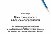 В этот день были проведены классные часы «Трагедия в Беслане - наша общая боль», посвященные 10-летию трагическим событиям в Беслане. В 13.05 все учащиеся и педагогический коллектив почтили минутой молчания память погибших.