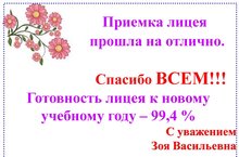 6 августа в лицее проходила приёмка образовательного учреждения к новому учебному году.