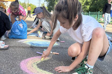 Акция «Планета детства». Учащиеся преобразили асфальт в школьном дворе в настоящее произведение искусства, нарисовав рисунки на тему детства. Их творчество наполнило дворовую территорию позитивом и радостью!