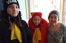 Тимуровский отряд "Дружные ребята" посетили труженика тыла Махмуду Ахматгараевну.