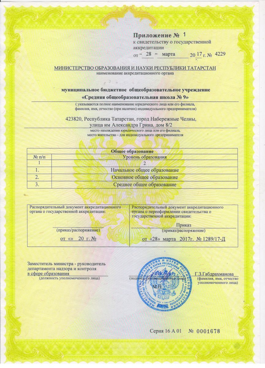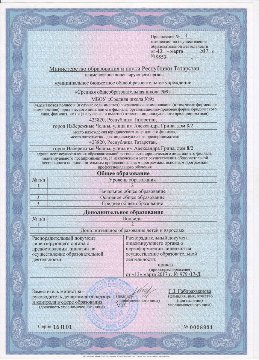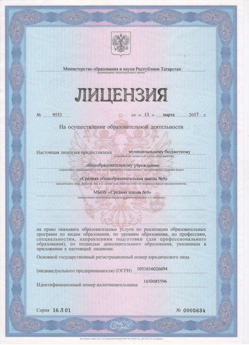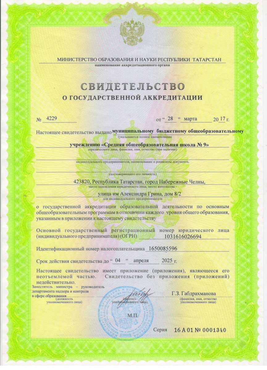 муниципальное бюджетное общеобразовательное учреждение «Средняя общеобразовательная школа №9» г. Набережные Челны/Яр Чаллы шәһәре «9 нчы урта гомуми белем бирү мәктәбе» муниципаль бюджет гомуми белем бирү учреждениесе