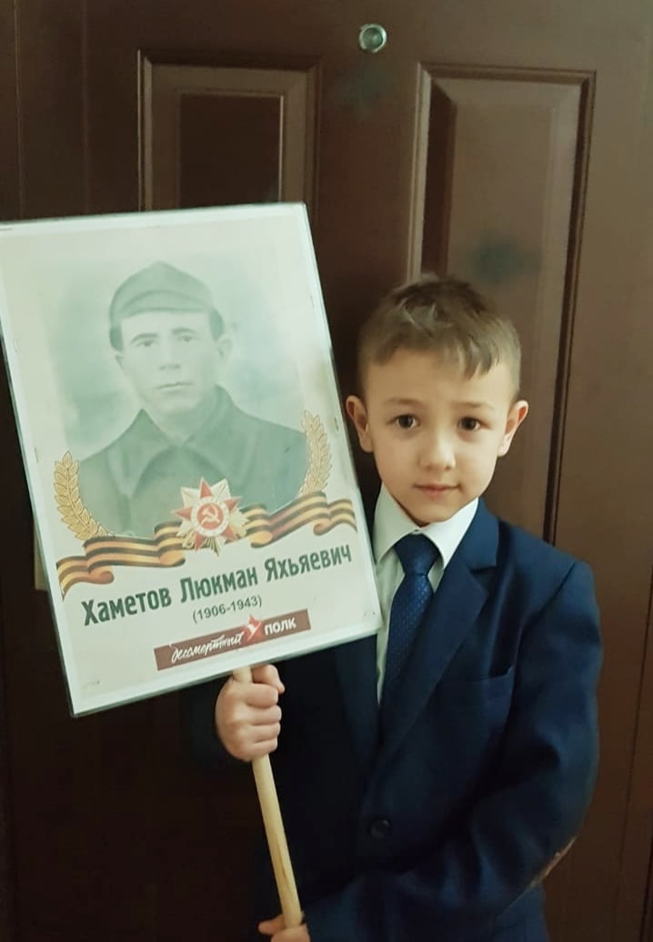 К акции "Бессмертный полк" присоединяется ученик 1В класса Фахразиев Эмир.