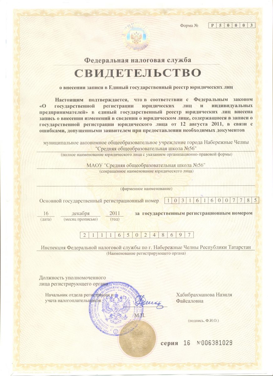 Муниципальное автономное общеобразовательное учреждение города Набережные Челны «Средняя общеобразовательная школа №56» имени Героя России Сергея Чебнёва