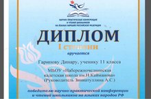 Поздравляем ученика 11 класса Гарипова Динара с победой