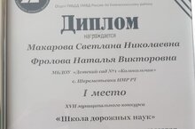 Поздравляем Макарову С.Н. и Фролову Н.В. с победой в муниципальном конкурсе "Школа дорожных наук" в номинации "Организационно-массовая работа" за многофункциональное игровое пособие "Кейс-чемоданчик по дорожной безопасности".