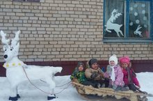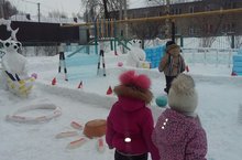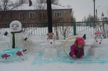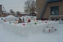 Коллектив детского сада, совместно с родителями воспитанников построили для детей снежный городок "Под сиянием полярной звезды". Автор проекта воспитатель Киляева Н.А.