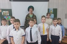 В рамках месячника по военно-патриотического воспитания в 5-х классах прошел классный час «Память о героях не уйдёт в забвенье». Классный руководитель Тюрикова Т.А. ознакомила ребят с произведениями, рассказывающие о юных героях войны. Гостем классного часа был Хасанов Ильнур Рамилович, ветеран боевых действий в Чечне, который рассказывал о службе в рядах Вооруженных сил, о своих сослуживцах.