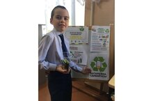 Обучающийся 2б класса Сергей Титов принял участие в акции «Батарейки, сдавайтесь!».