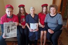 Юнармейцы и председатель Совета ветеранов Тартмина Л.М.поздравили с 85-летием Дурманову Т.И., ветерана труда совхоза "Нижнекамский".