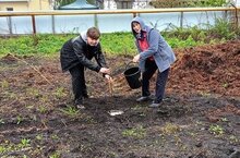 Воспитанники объединения "Друзья леса" посадили 15 яблонь на пришкольном участке.