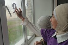 Обучающиеся 4 А класса с классным руководителем Гафиуллиной Р. Р. и волонтеры школы с руководителем Хохловой Н. А. приняли участие в акции "Окна Победы".