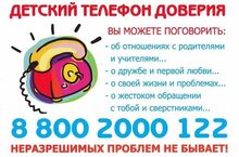 Единый Общероссийский телефон доверия для детей, подростков и их родителей 8-800-2000-122.