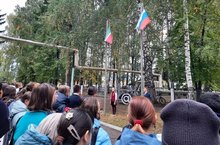 Учебная неделя начинается с торжественного исполнения гимнов и поднятия флагов Российской Федерации и Республики Татарстан.