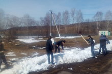 Сегодня обучающиеся 7 и 8 аклассов вышли на средник. Раскидали снег на территории школы.