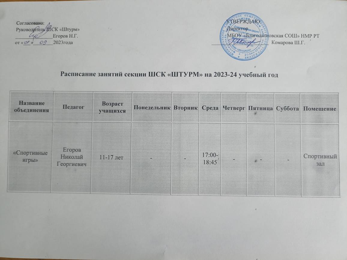 Расписание занятий сексции ШСК 2023-2024 уч.г.