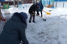 Средник по расчистке участка от снега был проведён сегодня силами сотрудников детского сада