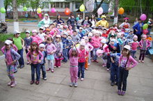 Сегодня в нашем детском саду прошло мероприятие, посвященное Дню защиты детей, в котором дети под веселую музыку танцевали, пели песни, а также был проведен конкурс рисунков на асфальте.