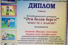 Воспитанница старшей логопедической группы Ахунова Милана и Азат Ильфатович и воспитанник Гилязиев Ильдар и Айдар Абузарович участвовали в республиканском конкурсе "Вместе с папой" и получили дипломы . Поздравляем и гордимся!!!