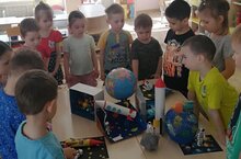 Сегодня в нашем детском саду прошёл тематический день, посвященный Дню космонавтики. Проведенные занятия и беседы были направлены на развитие познавательных и творческих способностей воспитанников. Во время беседы "Всё о космосе" воспитанники узнали о человеке, покорившем космическое пространство - Юрии Гагарине, о том, как четвероногие друзья человека Белка и Стрелка проложили путь к звёздам.