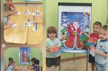 В завершение дети с радостью раскрасили шапки, Деда Мороза, лепили и клеили. -