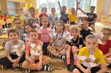 Воспитанники детского сада приняли участие в конкурсе, посвящённом Дню защитника Отечества. Они подготовили коллективное поздравление для участников специальной военной операции и передали им рисунки, которые нарисовали с любовью.