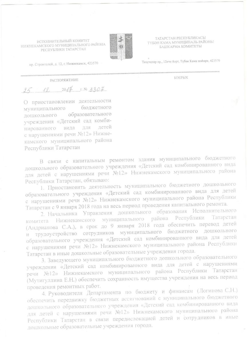 муниципальное бюджетное дошкольное образовательное учреждение "Детский сад комбинированного вида № 12" Нижнекамского муниципального района Республики Татарстан