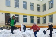 Наш дружный коллектив принял активное участие на среднике. Раскидывали снег на территории сада и прилегающих участков к ней.