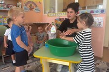 Педагог рассказала детям, почему так важно мыть руки, объяснила, что на руках живут микробы, которые мы не видим глазами, но они могут вызвать болезни.