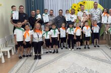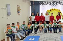 А в конце мероприятия наставники -школьники вручили нашим воспитанникам яркие тетради «Путешествие начинается» и памятные значки с символом Движения в Республике Татарстан — любимым всеми Барсиком!