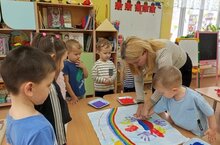 Ребята с огромным удовольствием участвовали в создании коллективного рисунка — каждый оставил на большом листе свой неповторимый отпечаток ладошки.