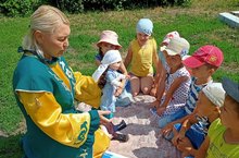Воспитатель по обучению татарскому и русскому языкам Харисова Г.Р. провела с детьми досуг посвященный к году Родного языка и единства.